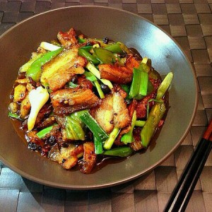 姜片,肉片下锅加酱油大火爆香,中火煸炒至肉片有成色