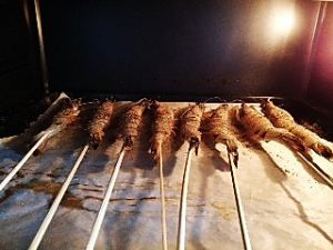 用竹签从尾部穿入,直到头部