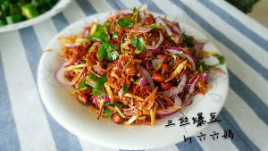 土豆去皮切丝,放冷水中,洒少许盐浸泡。