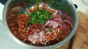 容器中放所有食材,用筷子轻轻拌匀即可。