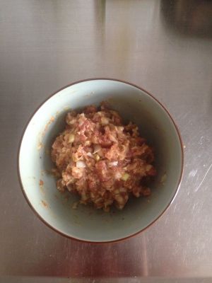 五花肉绞成肉馅,加入生抽,老抽,葱碎,少许盐,搅拌均匀