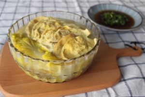 注意炖煮时不可盖锅盖,不然蛋饺容易胀大变形!一般开水煮5~8分钟即可