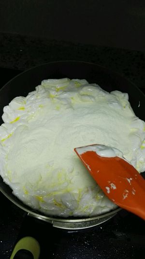 待棉花糖将要完全融化时加入奶粉,搅拌均匀。