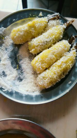 放入油锅内炸制。可口的土豆泥黄金虾就ok了。