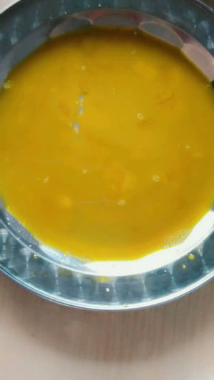 鸡蛋打成蛋液放入盘中。