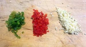 之前准备好的青椒、红椒、酸切成蓉