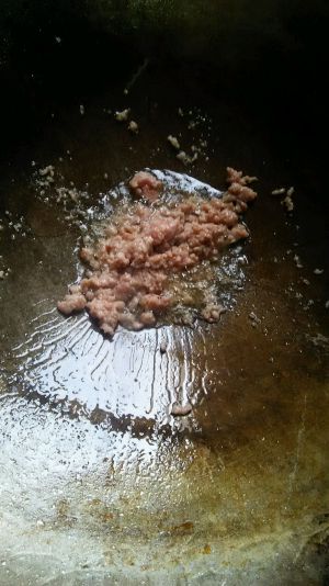 加入肉沫调味鸡精,盐勾薄芡起锅