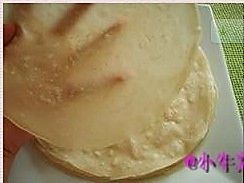 将最上层已经熟了的饼揭下来(一张春饼就完成了),如此反复重复,直到烙完最后一张~~看看是不是很薄嘞?