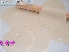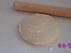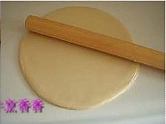 将面皮一点点擀大(擀的中途记得翻面再擀,如不翻面饼因为上下受力不均,变的大小不一);