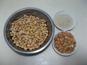 泡发好的黄豆、熟杏仁、白芝麻准备好