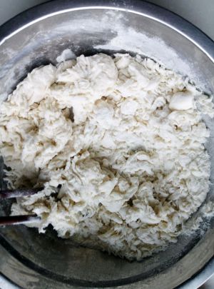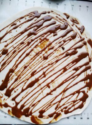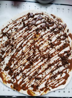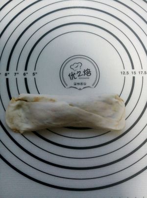 活好的面团醒十分钟,擀开。薄一点。卷的圈数多了层层就多。