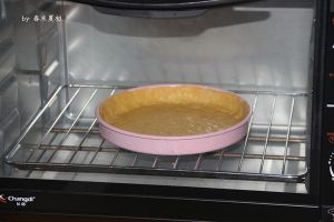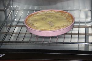 烤箱175度,上下火,中下层,继续烤20-25分钟至馅液凝固,出炉再撒点椰蓉、糖粉在派的表面。