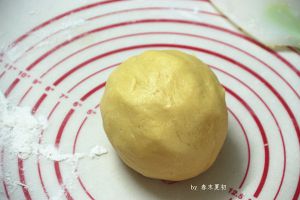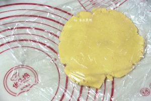 (派皮)筛入蛋糕粉,揉成团,保鲜膜包好放冷藏30分钟。