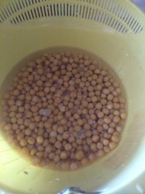 前一晚上就把豌豆泡一晚上,担心不够勾芡可以加一小把米