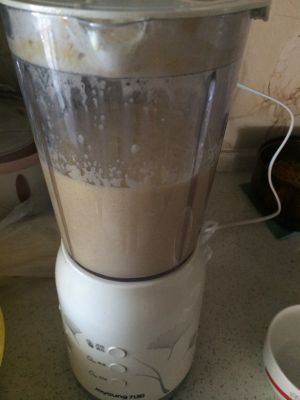 用料理机将泡了一整晚,至少八个小时的豆打碎