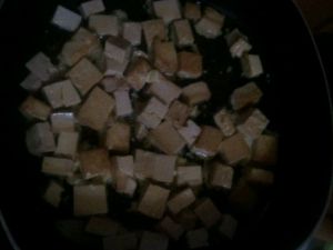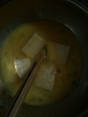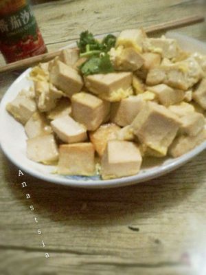 鸡蛋打散搁点盐,豆腐在里面过一下,