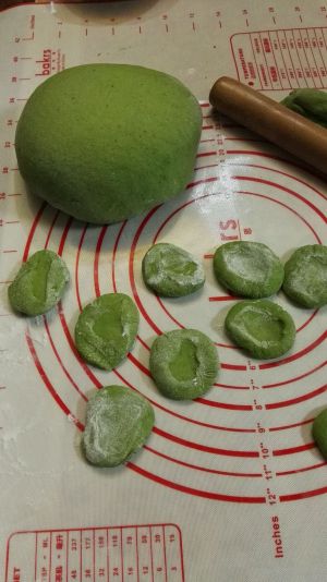 面粉和水的比例基本按2:1调和即可,我用菠菜汁直接代替水的分量。