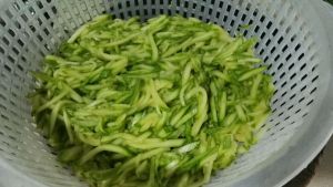 西葫芦瓜切丝,用盐抓软挤出多余水分沥干水。