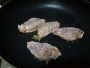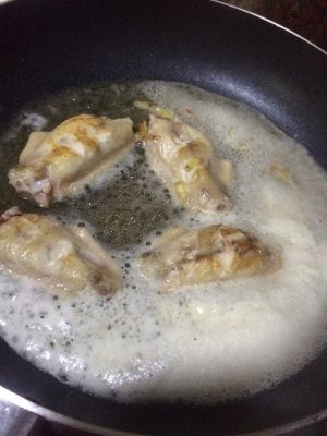 油热下鸡翅煎至两面金黄