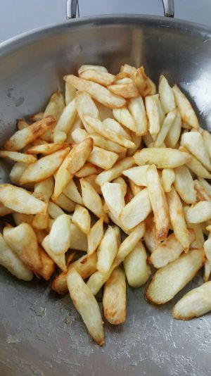 将山药切好放入玉米淀粉拌均匀放入油锅炸成黄色,用铲子或者筷子巴拉一下发硬就可以了。