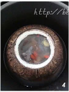 把椰子盅打开,倒入三分之一椰汁。(我买的是已经开好盖的椰子)