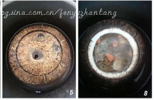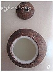 锅里倒入清水,放入个小碟或碗,然后把椰子盅放锅内,盖上椰盖和锅盖,