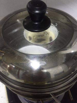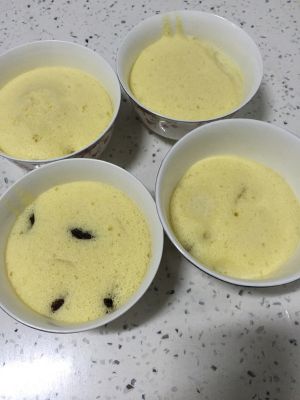 装入模具轻震出气泡,(我这里没模具用的碗),锅里水烧开放入蒸8分钟就ok了