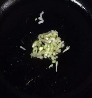 油锅内放入葱花炒出香味。