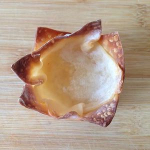 将馄钝皮放进烤箱,180度火烤约15-20分钟(时间根据自己的烤箱灵活掌握),烤至四周金黄取出。