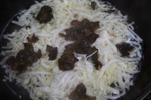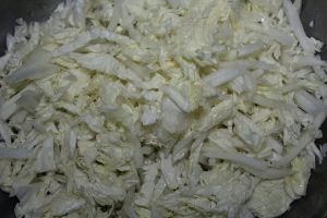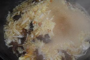 煮到白菜七成熟的时候,加适量的盐(干虾仁本身有点咸味),胡椒粉,生抽