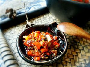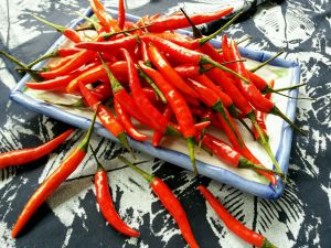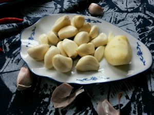 锅里放油,要多点,油量可以和辣椒平,微微烧热,爆炒辣椒,蒜姜