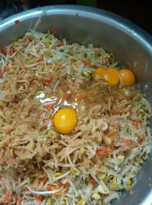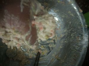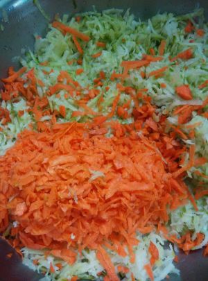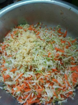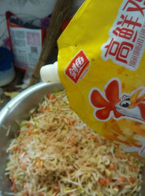 刮好了,颜色是不是很好看啊,以前炸丸子只放白萝卜,这次我放了些红萝卜