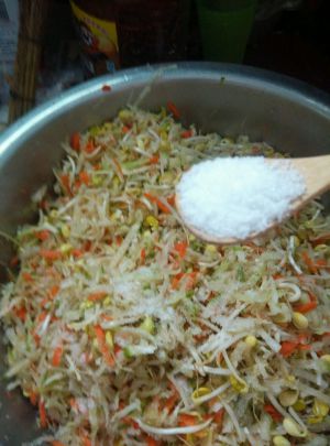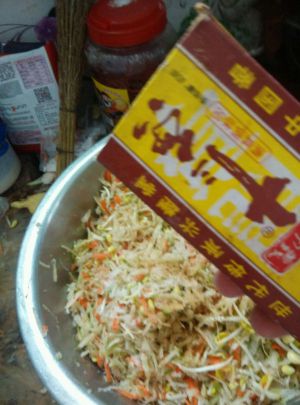 放入豆芽搅拌均匀