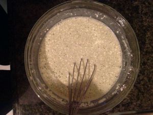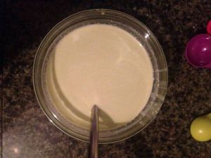把所有材料拌均匀成糊状。用打打蛋器哦!