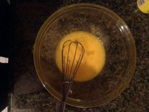 不鸡蛋打入碗里,用打蛋器打均匀。鸡蛋不要打发了哦。