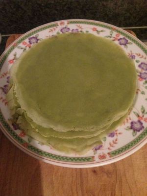 把煎好的班戟皮从锅中取出备用。