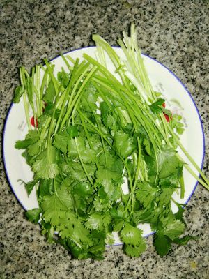 香菜洗净,切成两段