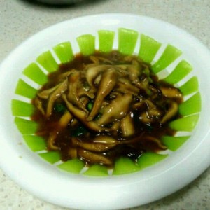 鲜香菇炒熟,水淀粉勾芡。