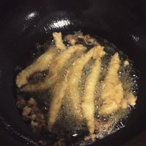 油锅烧热 裹上面糊 下锅炸至金黄即可