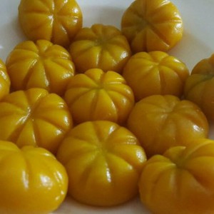 南瓜先隔水蒸熟冷却,再加入所有粉粉与白糖拌匀,面团要比较干硬更好整形,而且蒸熟后不会变塌掉。