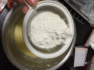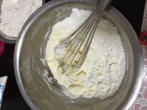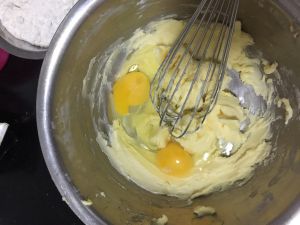 两鸡蛋打入到搅拌好的黄油中继续拌匀