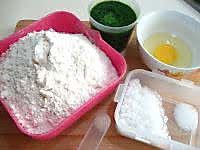 除植物油外的所有原料,菠菜用水焯过后打成菠菜汁