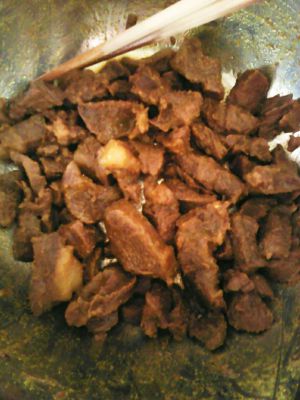 肉捞出,加入白糖,盐,生抽,咖喱粉食用油拌匀