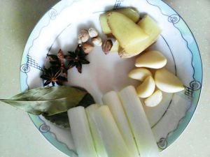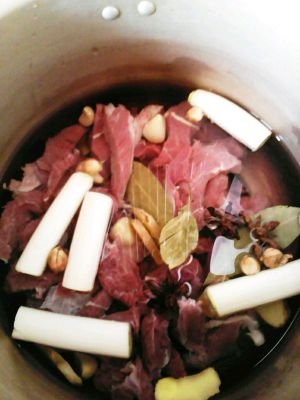 肉和第四步所有材料都放入高压锅中,烧开改小火15分钟