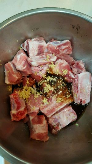 排骨洗净沥干水分加入所有腌料拌匀,覆盖保鲜膜入冰箱,冷藏至少3小时,根据个人口味加盐,因为糯米没有味道,重口的可以盐量稍多些