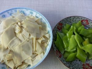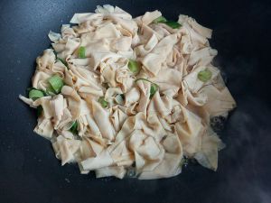 锅中加油,放葱蒜爆香,加干豆腐翻炒,加蚝油、少许水烧煮一下