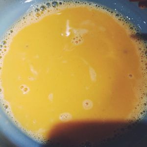 将适量鸡蛋打成液,鲜柠檬挤一点汁进去搅均匀