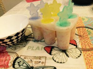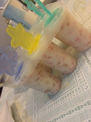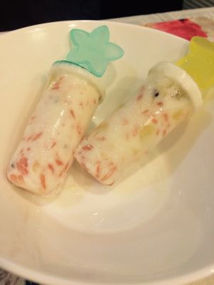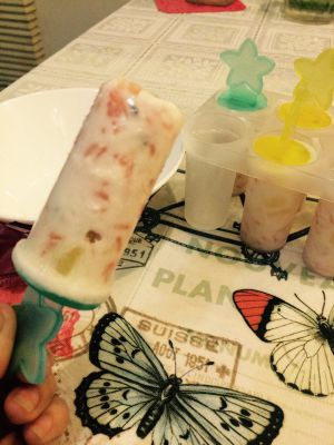 将混合酸奶放入模具里,放冷冻室冷冻三小时以上。