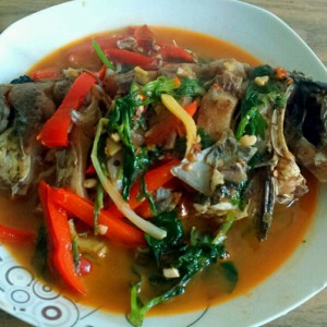 鲫鱼清理后用刀将两面划开,切好芹菜、辣椒,生姜大蒜切末