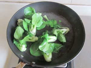 洗净的小白菜放入加了点油和盐的开水中焯烫;